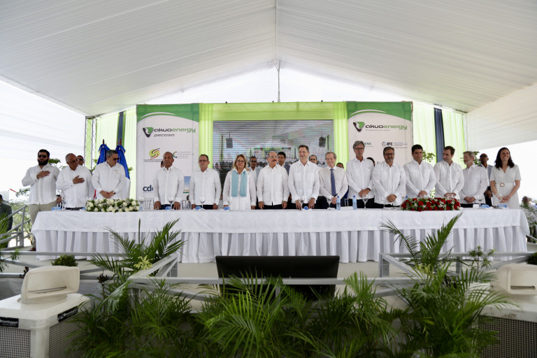 Acto de inicio de las operaciones de Parques Eólicos del Caribe (PECASA), en Montecristi, encabezado por el presidente Danilo Medina y ejecutivos de la empresa Akuo Energy de energías renovables.
