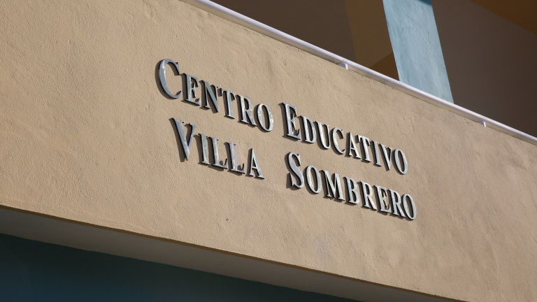 Fachada frontal del nuevo Centro Educativo Villa Sombrero, en provincia Peravia, lugar donde se realizó el acto de inauguración múltiple.