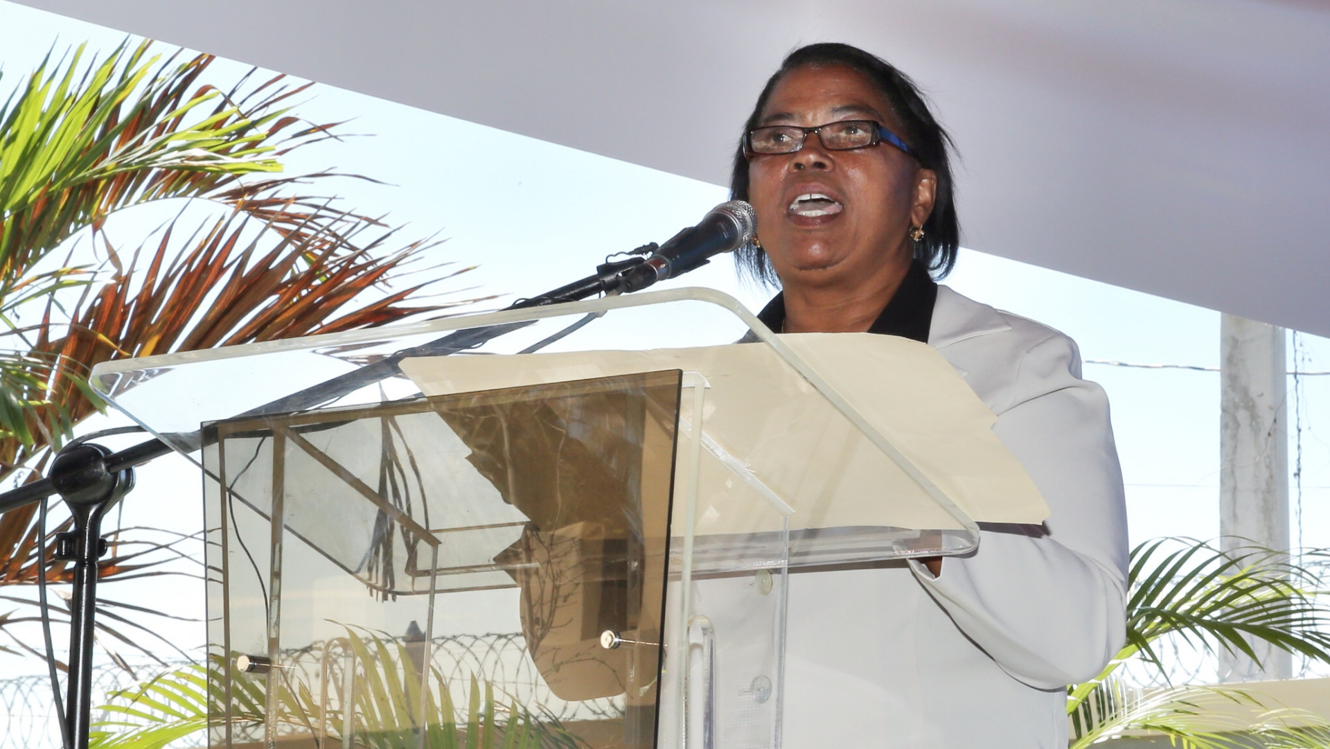 Participación de Ofelia Díaz Lora, directora de la Escuela Básica Villa Sombrero, mientras se dirige a los presentes.