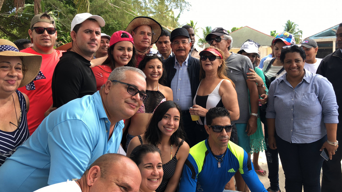El presidente Danilo Medina con turistas y dominicanos que disfrutaban de las hermosas y paradisíacas playas.