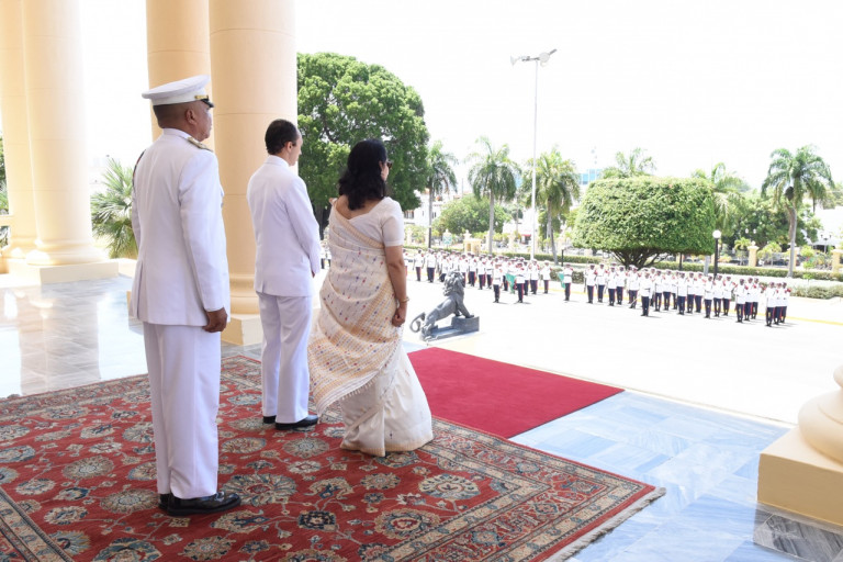 Los nuevos embajadores en el país recibieron los honores militares a su llegada, en la escalinata frontal del Palacio Nacional.