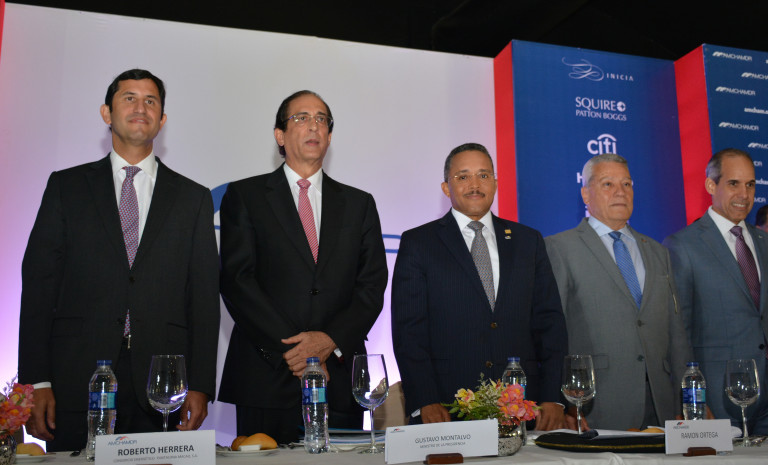 El ministro de la Presidencia, Gustavo Montalvo junto a los directivos de la Cámara Americana de Comercio, encabezados por su presidente Ramón Ortega.