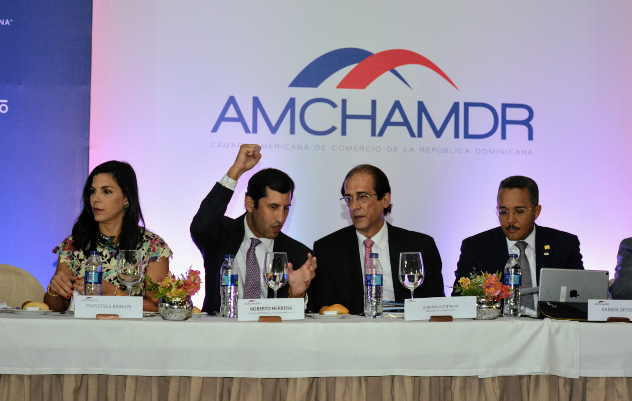 El ministro de la Presidencia, Gustavo Montalvo junto a los directivos de la Cámara Americana de Comercio.