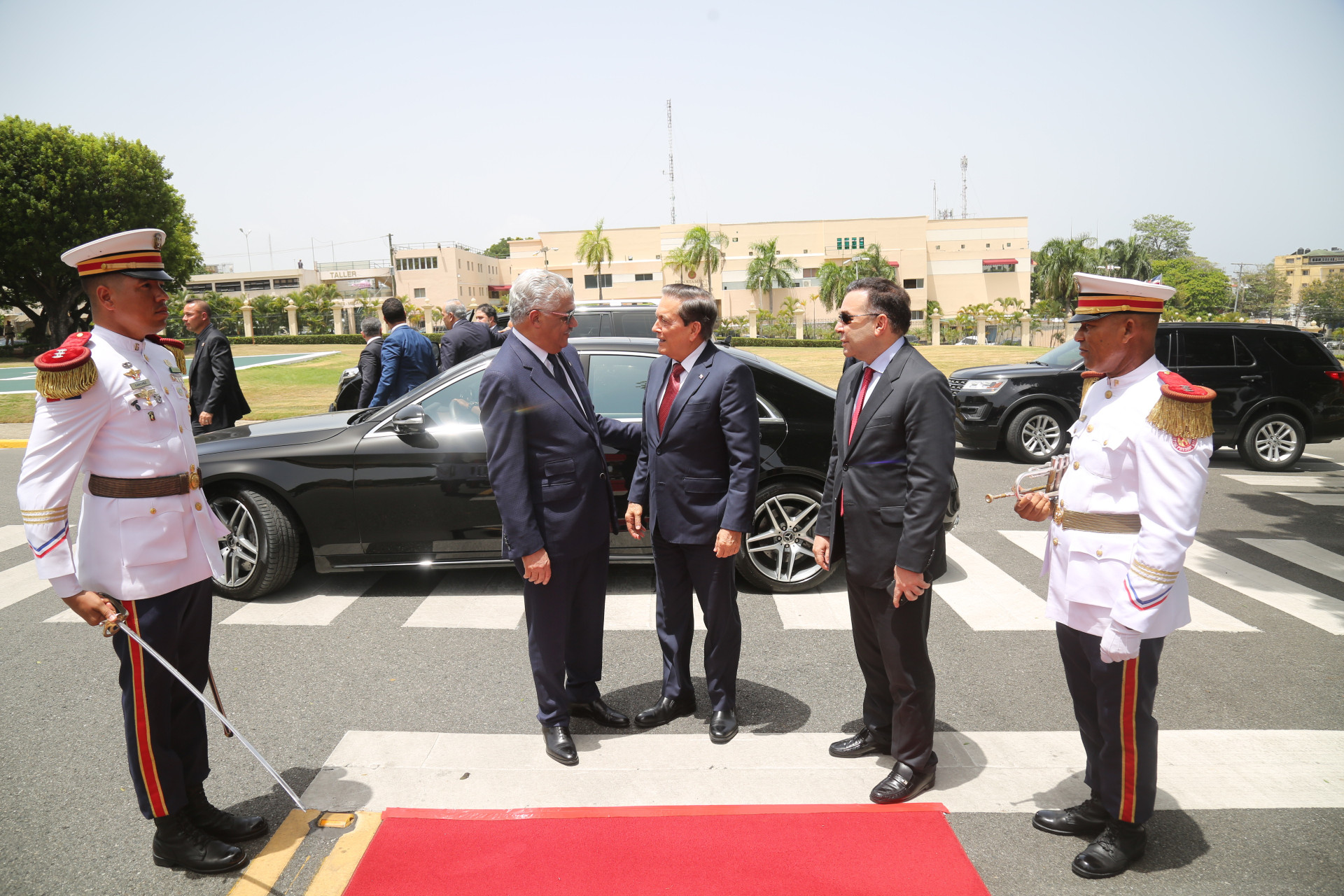 Llegada del presidente electo de Panamá, Laurentino Cortizo al Palacio Nacional, acompañado del ministro de Relaciones Exteriores, Miguel Vargas, donde recibió los honores de estilo por miembros del Primer Regimiento de la Guardia Presidencial.