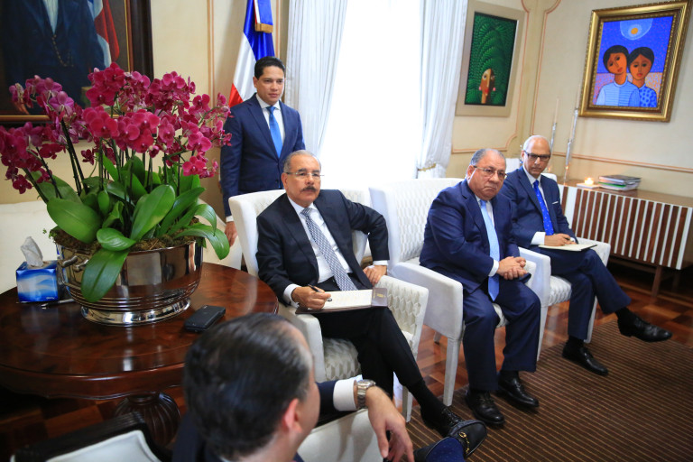 Reunión del presidente Danilo Medina con miembros de la Asociación de Comerciantes e Industriales de Santiago (ACIS), encabezados por su presidente, Sandy Filpo, en el Salón Privado del Palacio Nacional.