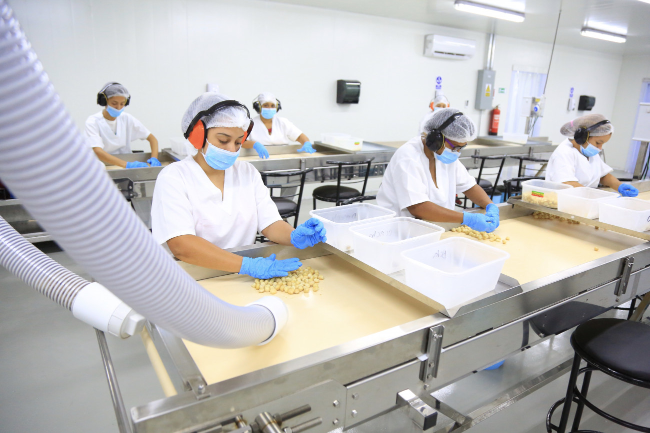 Empleados de la planta procesadora de macadamia, de la firma La Loma, primera en el Caribe, inaugurada hoy con la participación del presidente Danilo Medina.