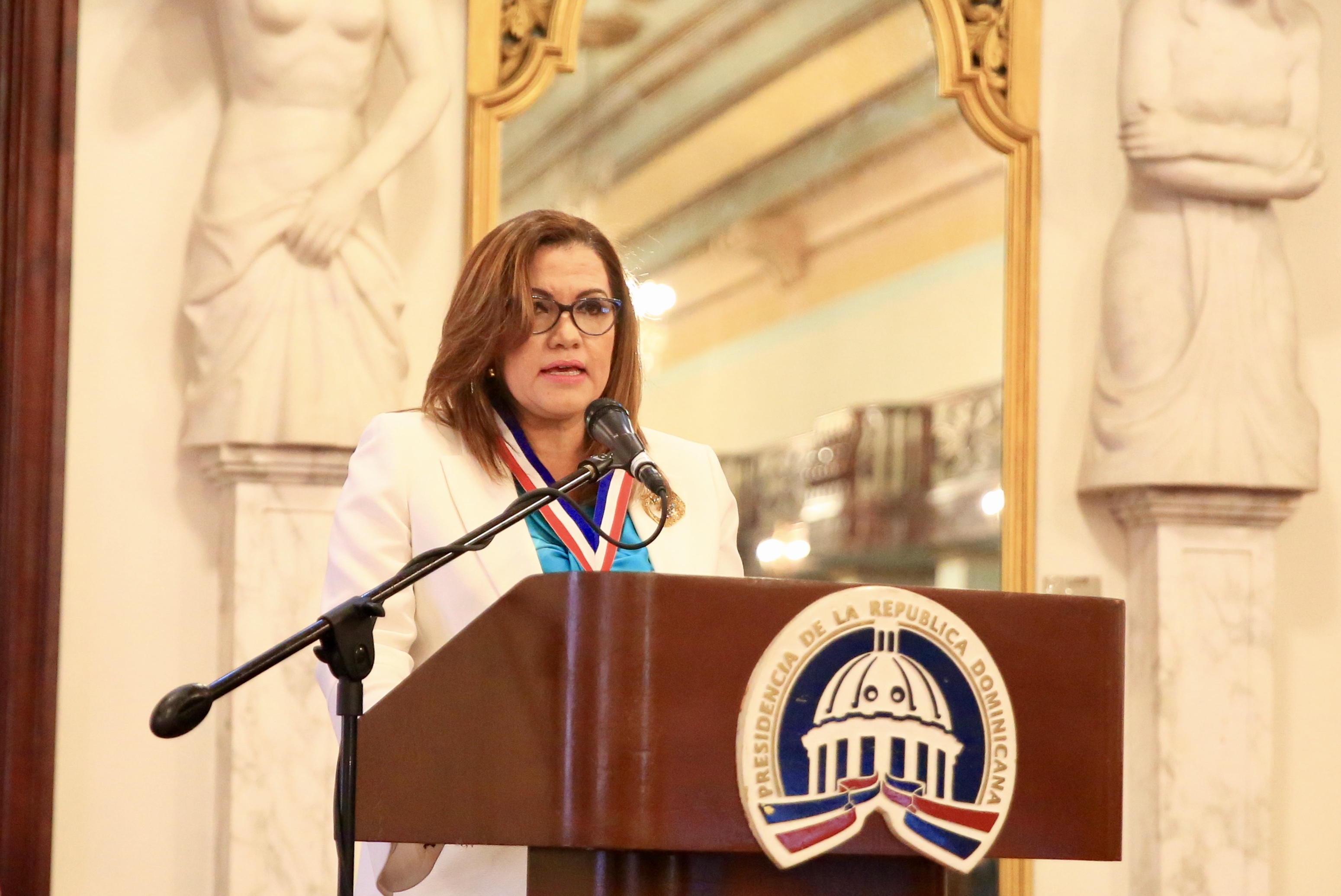 Maestra Tammi Vianney González Rodríguez, galardonada con el Premio al Honor Pedro Henríquez Ureña, Medalla de Oro, agradeció en nombre de sus compañeros docentes por el reconocimiento.