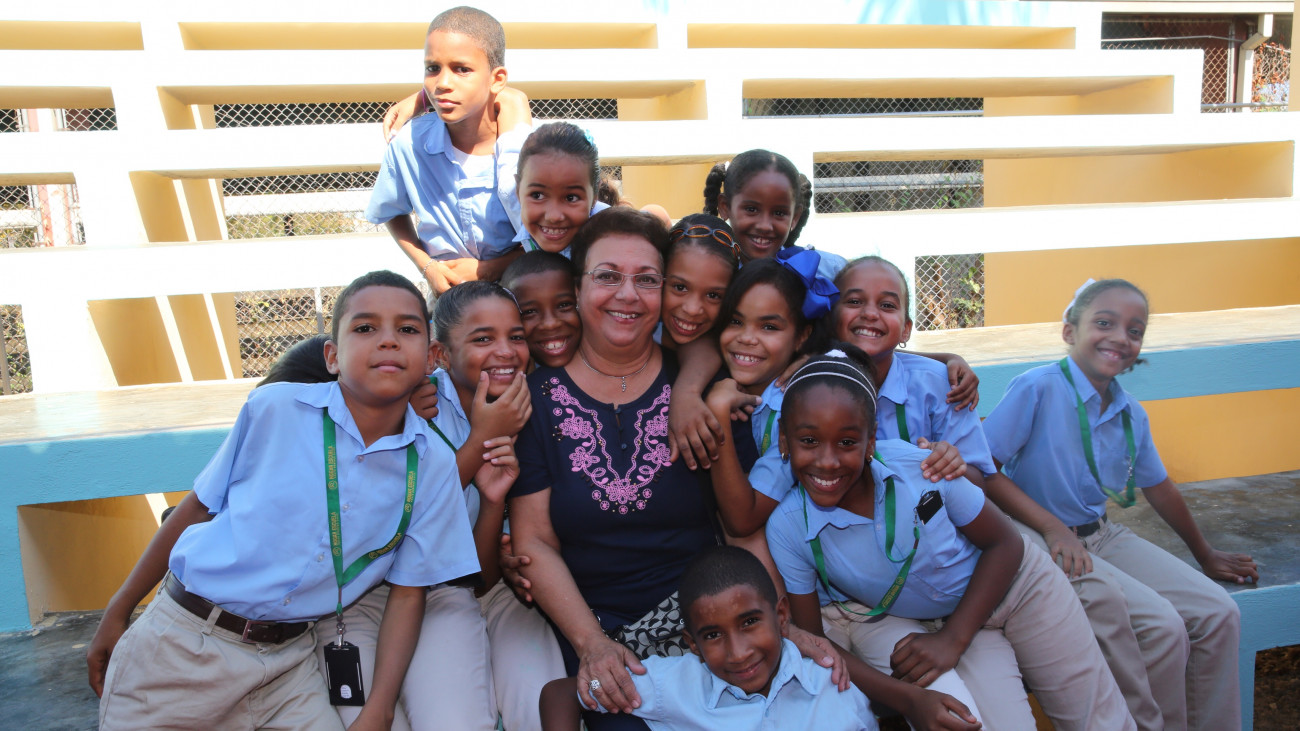 Maestra y alumnos felices y contentos al recibir los nuevos planteles, los cuales están totalmente equipados con laboratorios de ciencias y de informática, paneles solares y biblioteca, comedor escolar, entre otras comodidades para el buen desarrollo de los estudiantes.
