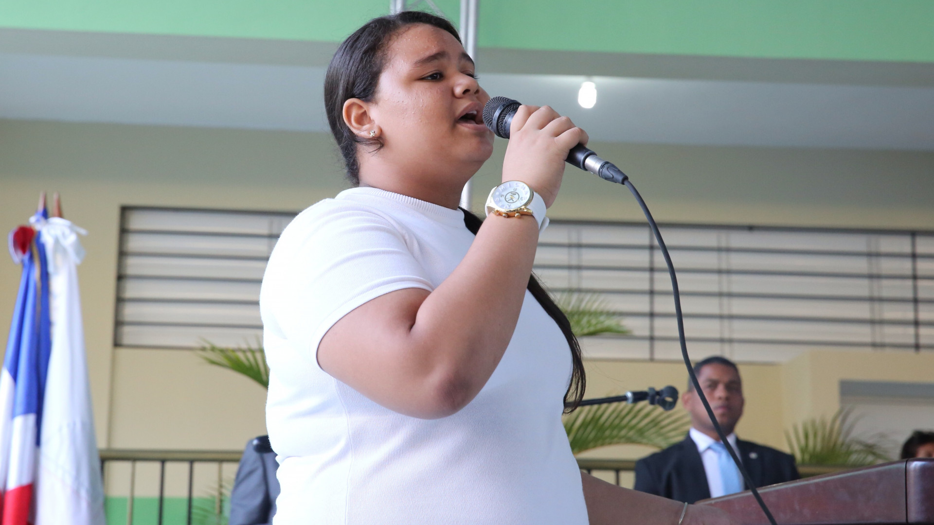 Suanny Estrella, estudiante del Proyecto Escuela La Hora de Dios, interpreta la canción Llegar a la Meta.