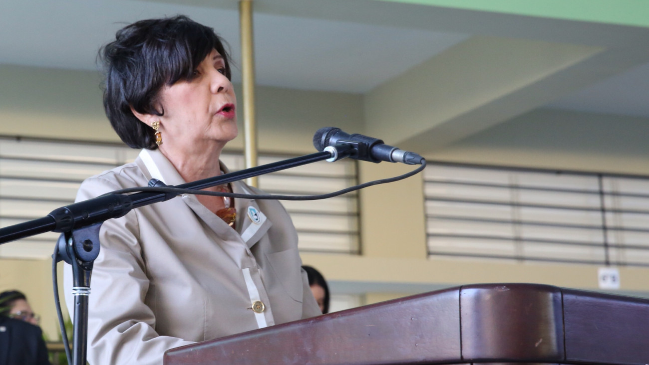 Temmy Caamaño de Espaillat, presidenta de la Asociación La Hora de Dios, cuando se dirige a los presentes, durante el acto inaugural del centro de estudios.