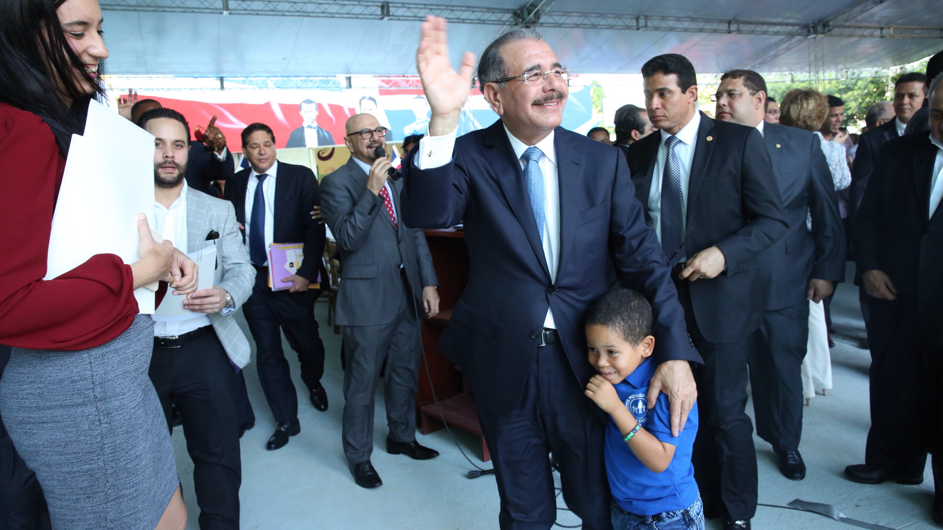 El presidente Danilo Medina es recibido con júbilo por los presentes en la Escuela La Hora de Dios.