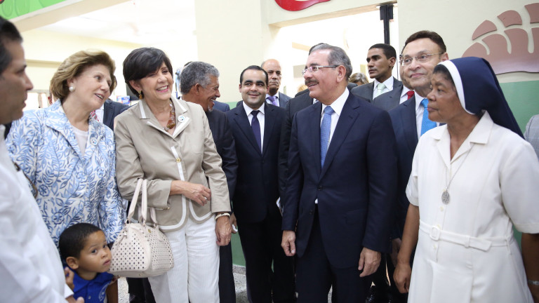 Recorrido del presidente Medina por los trabajos de remodelación y ampliación de la Escuela La Hora de Dios, compañado de Sor María Altagracia Cordero, directora de la institución y Temmy Caamaño de Espaillat, presidenta de la Asociación La Hora de Dios, entre otros presentes en la actividad.