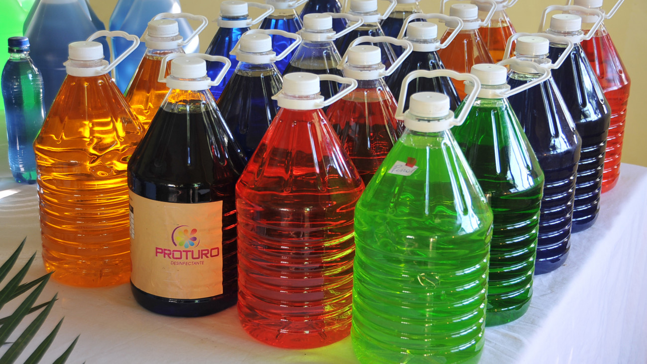 Productos químicos hechos por la Asociación de Mujeres hacia el Futuro de La Pascuala, Samaná.