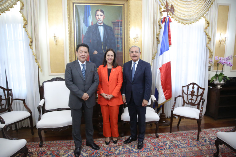 En el marco de los 60 años de operaciones de American Honda Motor Company y Agencia Bella en República Dominicana, el presidente Danilo Medina recibió la visita de cortesía de sus ejecutivos, en su despacho del Palacio Nacional.