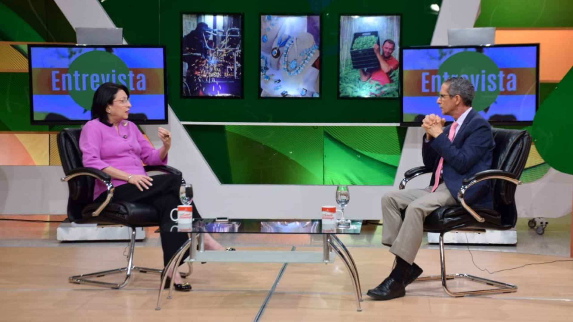 La presidenta ejecutiva de la Fundación Reservas del País, Rosa Rita Álvarez, durante entrevista de Ramón Tejeda Read, conductor del programa Ojalá y director general de CERTV.