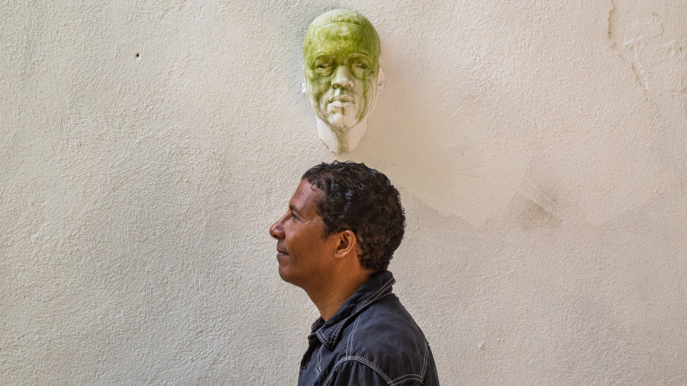 Tranquilo y feliz, Moisés disfruta de su oficio bajo una mata de mango. En nuestro país -dice- se puede vivir dignamente del arte