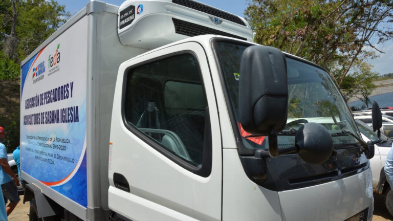 SABANA IGLESIA, Santiago. – Los integrantes de la Asociación de Pescadores y Acuicultores de Sabana Iglesia (ASOPESASI) recibieron hoy el camión refrigerado que les prometió el presidente Danilo Medina, durante su Visita Sorpresa 203. Foto: Presidencia República Dominicana Enlace noticia: presidencia.gob.do/noticias/pescadores-de-sabana-iglesia-...