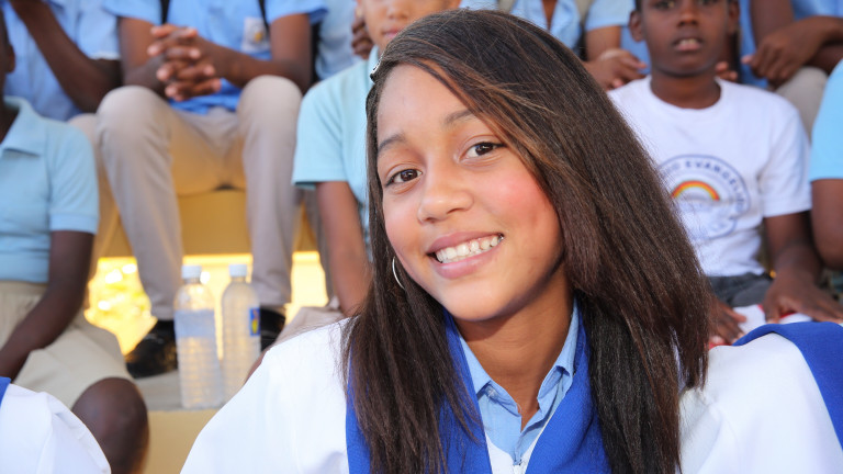 Estudiantes felices al recibir los nuevos planteles por parte del presidente Danilo Medina, los cuales forman parte de la Jornada de Tanda Extendida. Foto: Ángel Álvarez Rodríguez/Presidencia República Dominicana Nota de prensa: presidencia.gob.do/noticias/la-romana-recibe-25-aulas-mas...