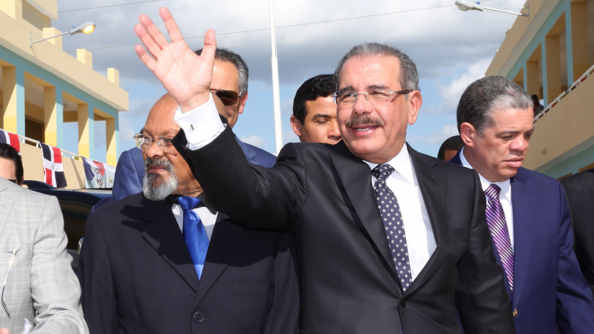 El presidente Danilo Medina fue recibido con alegría por los estudiantes y moradores del lugar, al momento de llegar al acto de inauguración de los planteles educativos.