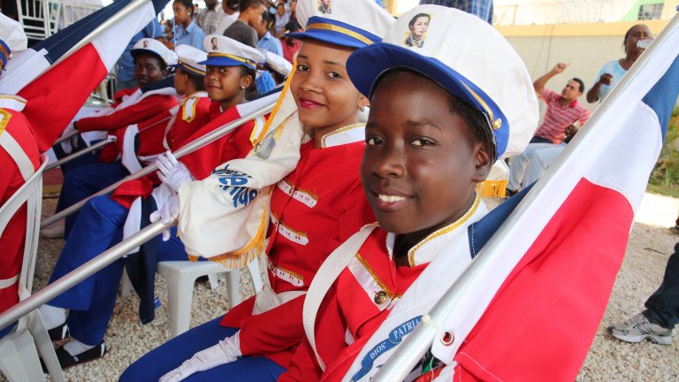 Estudiantes felices al recibir las dos nuevas escuelas construidas a un costo de RD$65,296,685. 98, por el Estado y las cuales forman parte de la Jornada de Tanda Extendida.