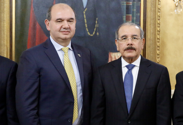 Presidente Danilo Medina y Adriano Brunetti, presidente de ADOCEMRD, en el Salón Privado, del Palacio Nacional.