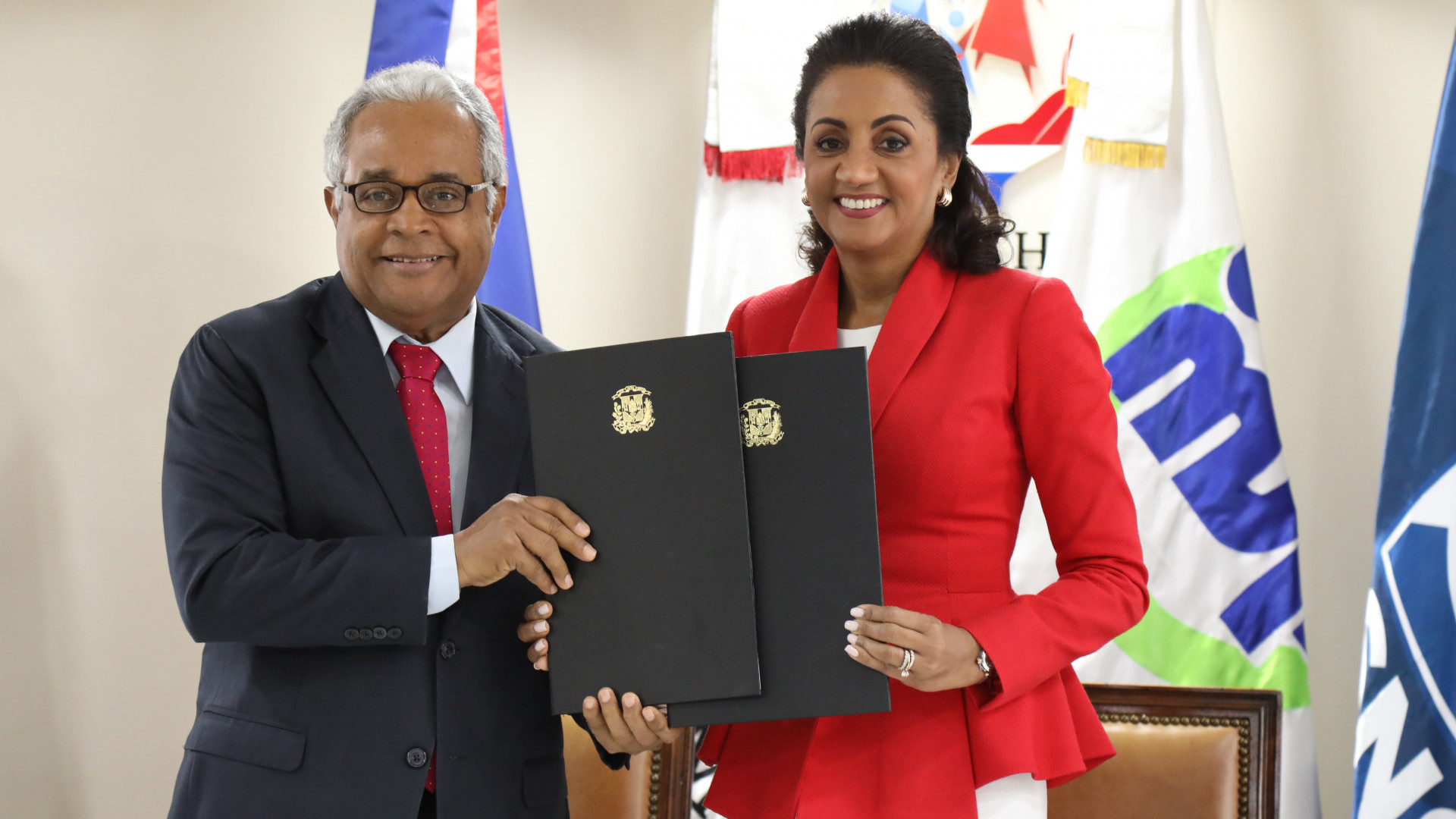 La primera dama de la República, Cándida Montilla de Medina y el ministro de Salud Pública, Rafael Sánchez Cárdenas, durante convenios firmados.
