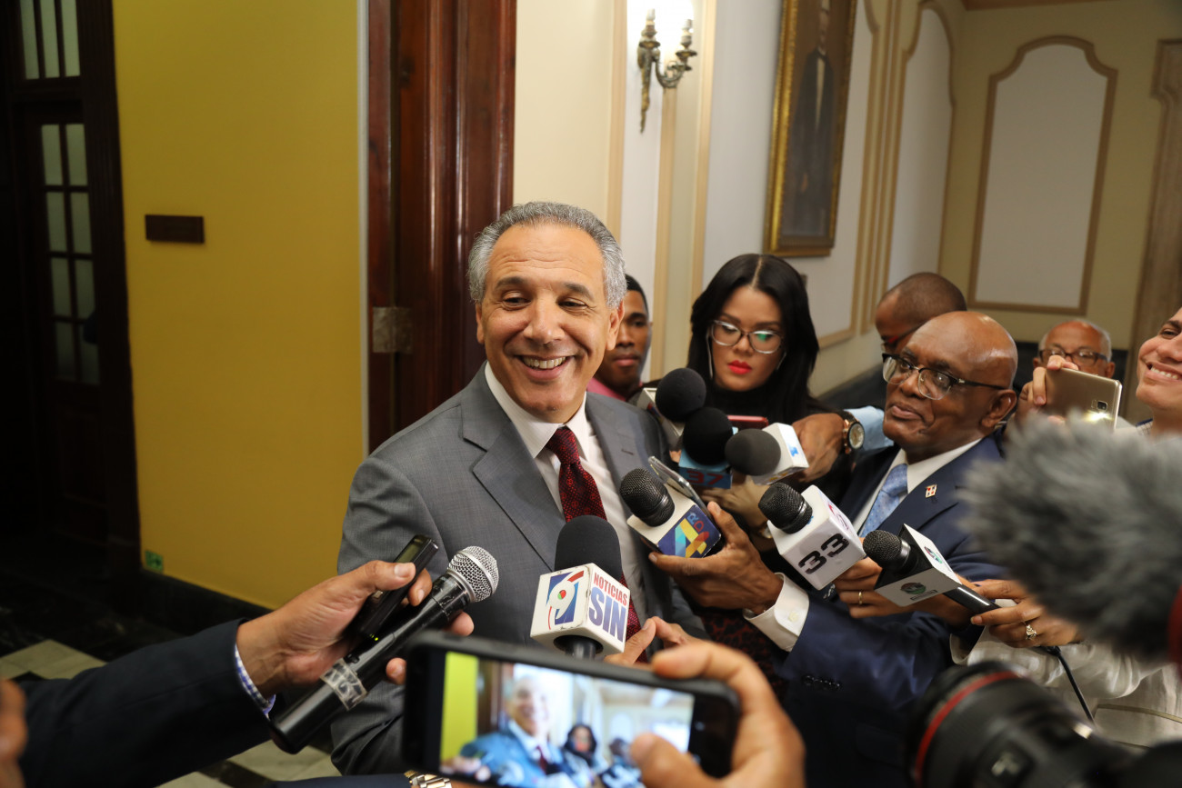 Ministro Administrativo de la Presidencia, José Ramón Peralta, al ofrecer la información a los medios y los ciudadanos, en el Palacio Nacional.