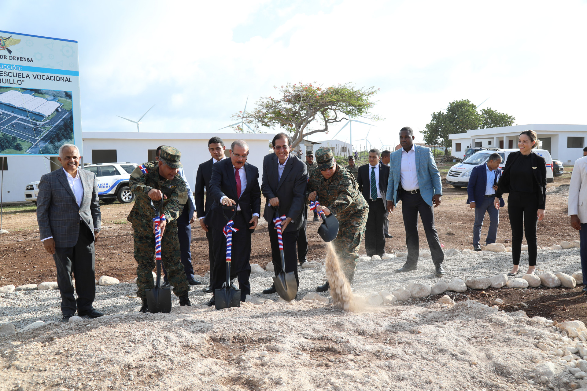 En Enriquillo, Danilo Medina entrega quinto Puesto Interagencial para proteger frontera y da primer palazo construcción Escuela Vocacional