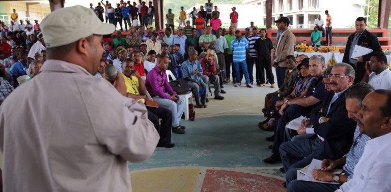 Encuentro del presidente Medina y productores de café de la comunidad de Polo, Barahona, a quienes les ofreció la ayuda del Estado para el desarrollo de la producción agrícola.