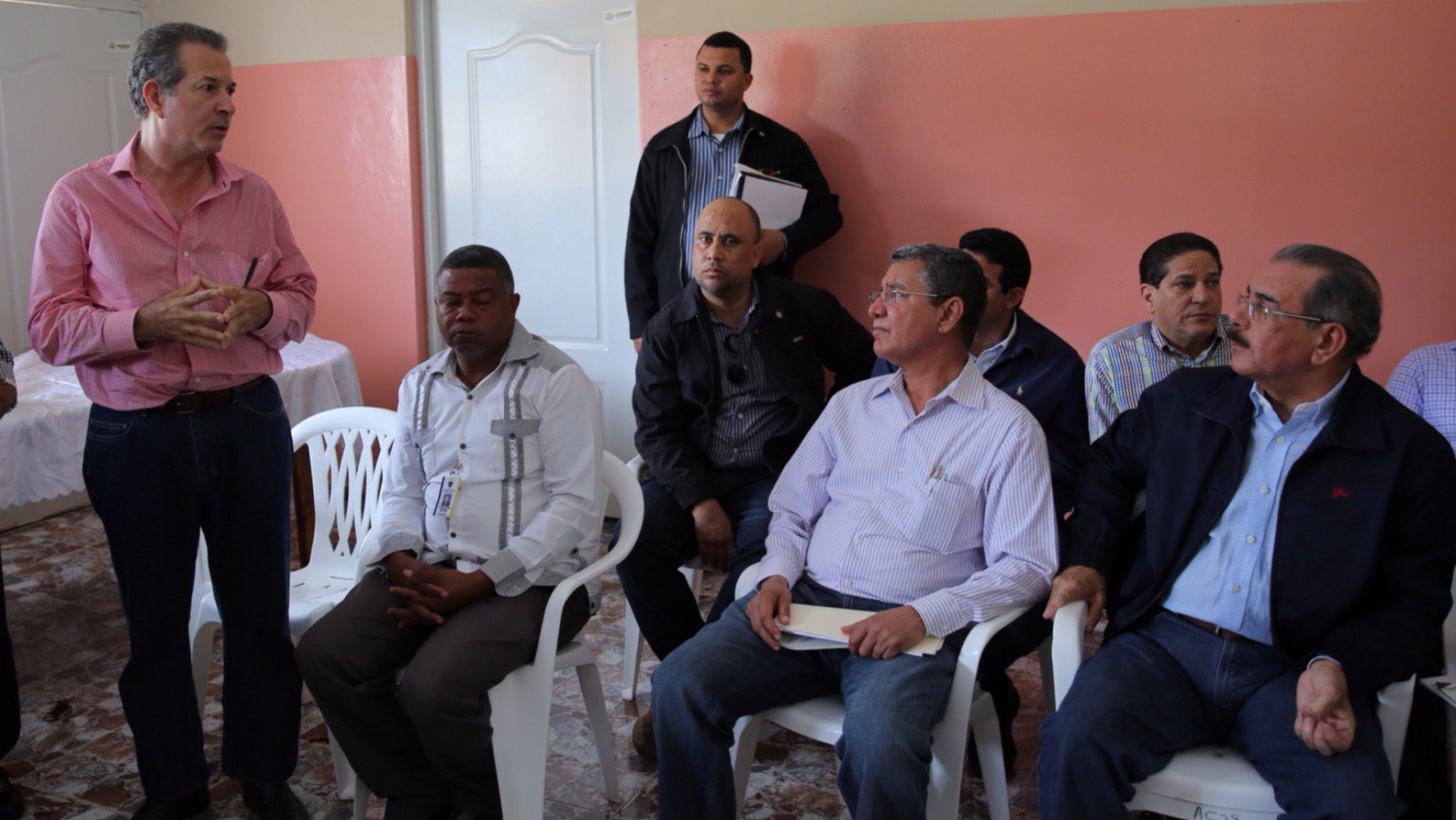 El presidente Danilo Medina durante encuentro con productores de café en comunidad de Villa Nizao, Paraíso, a quienes les ofreció el apoyo del gobierno para solucionar los problemas de sus plantaciones por la roya.