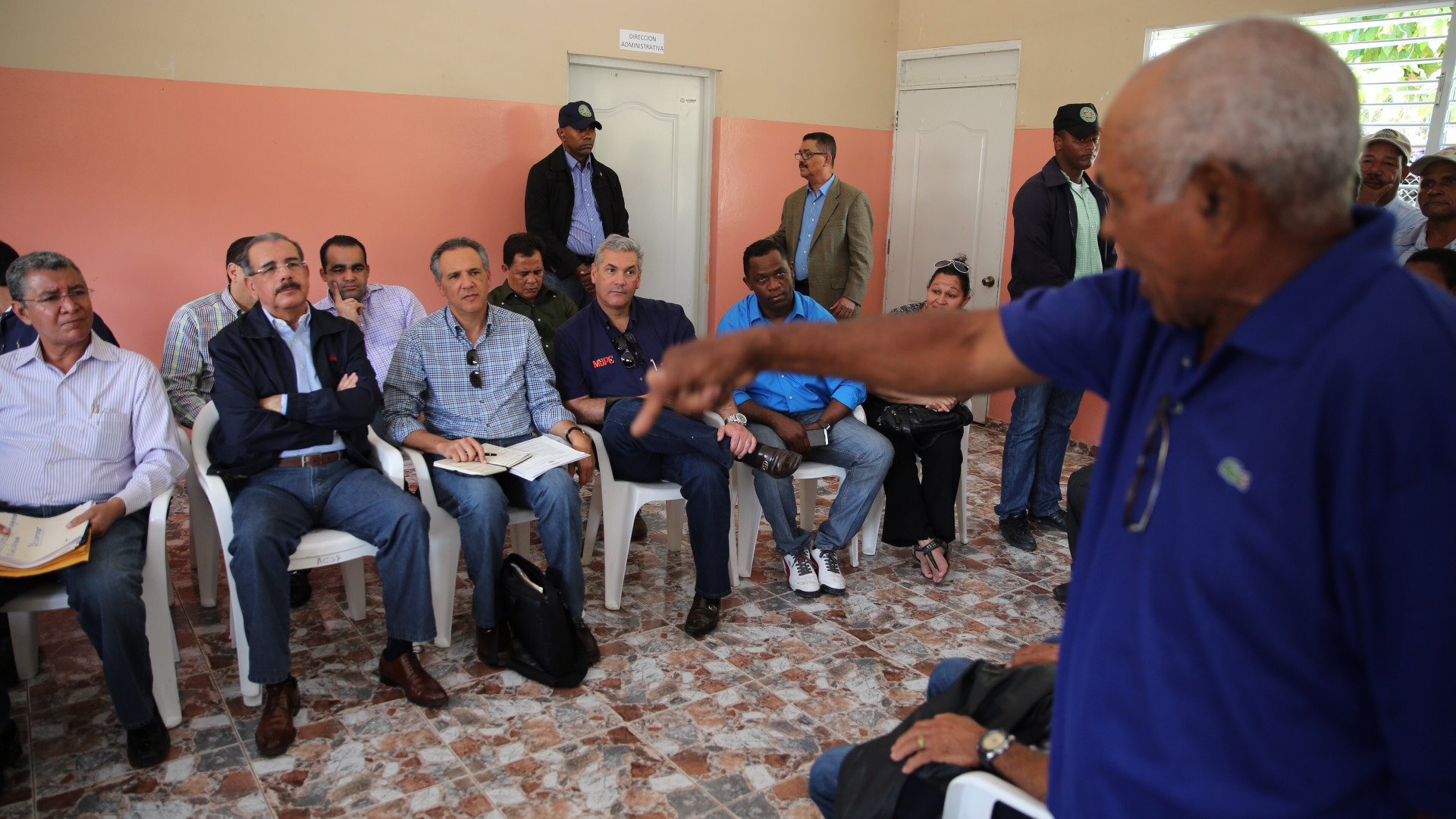 El presidente Danilo Medina con caficultores del lugar, a quienes les otorgó un financiamiento por la suma de 27 millones de pesos, para que puedan renovar sus plantaciones con variedades resistentes a la roya del cafeto.