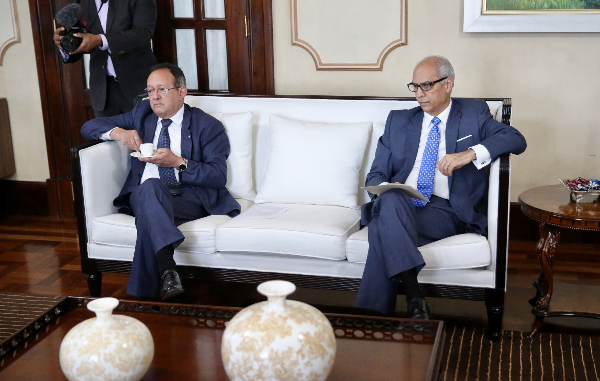 Ángel Estévez, ministro de Medio Ambiente, y Flavio Darío Espinal, consultor jurídico del Poder Ejecutivo, durante la reunión.