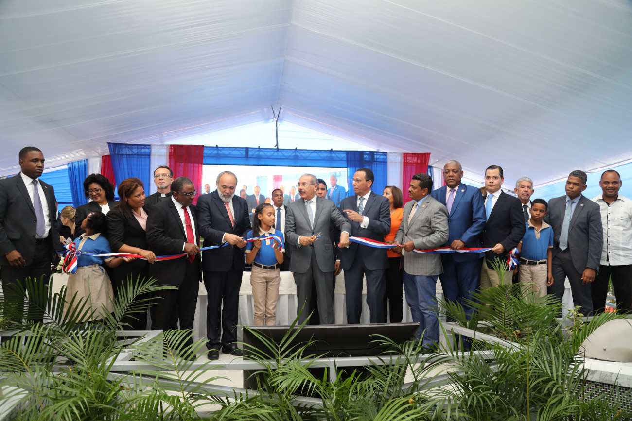 Danilo entrega escuela en Los Alcarrizos. Más de 197 mil estudiantes provincia Santo Domingo han sido integrados a Jornada Escolar Extendida