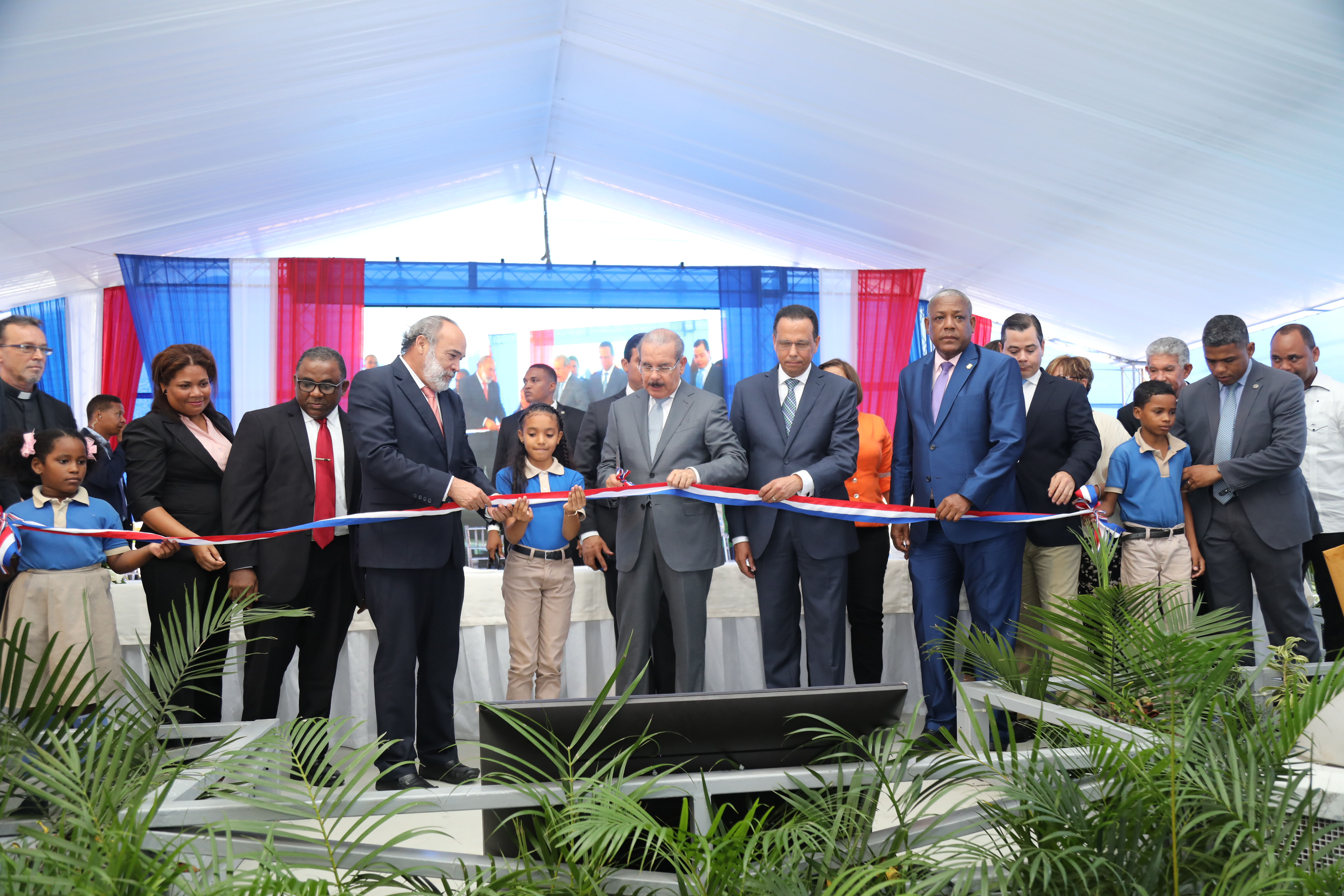 Danilo entrega escuela en Los Alcarrizos. Más de 197 mil estudiantes provincia Santo Domingo han sido integrados a Jornada Escolar Extendida