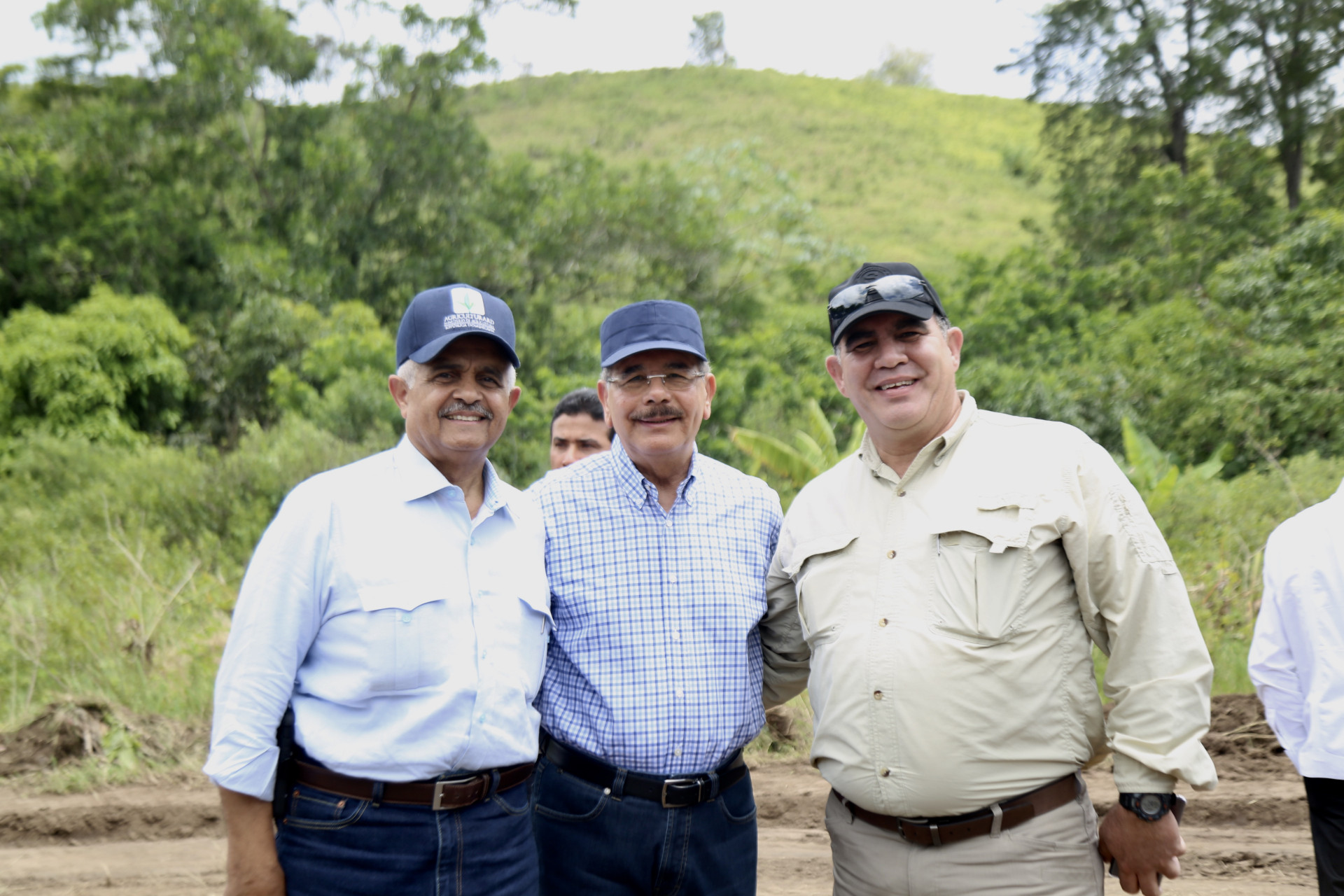 En una nueva muestra del interés de otras naciones en el eficaz mecanismo de reducción de pobreza rural del gobierno dominicano, el secretario de Estado de Agricultura y Ganadería de Honduras, Mauricio Guevara, acompañó a Danilo Medina, quienes fueron recibidos de manera cálida y efusiva por más de un centenar de productores organizados en ASODERO. A la derecha del jefe del Estado, el ministro de Agricultura, Osmar Benítez.