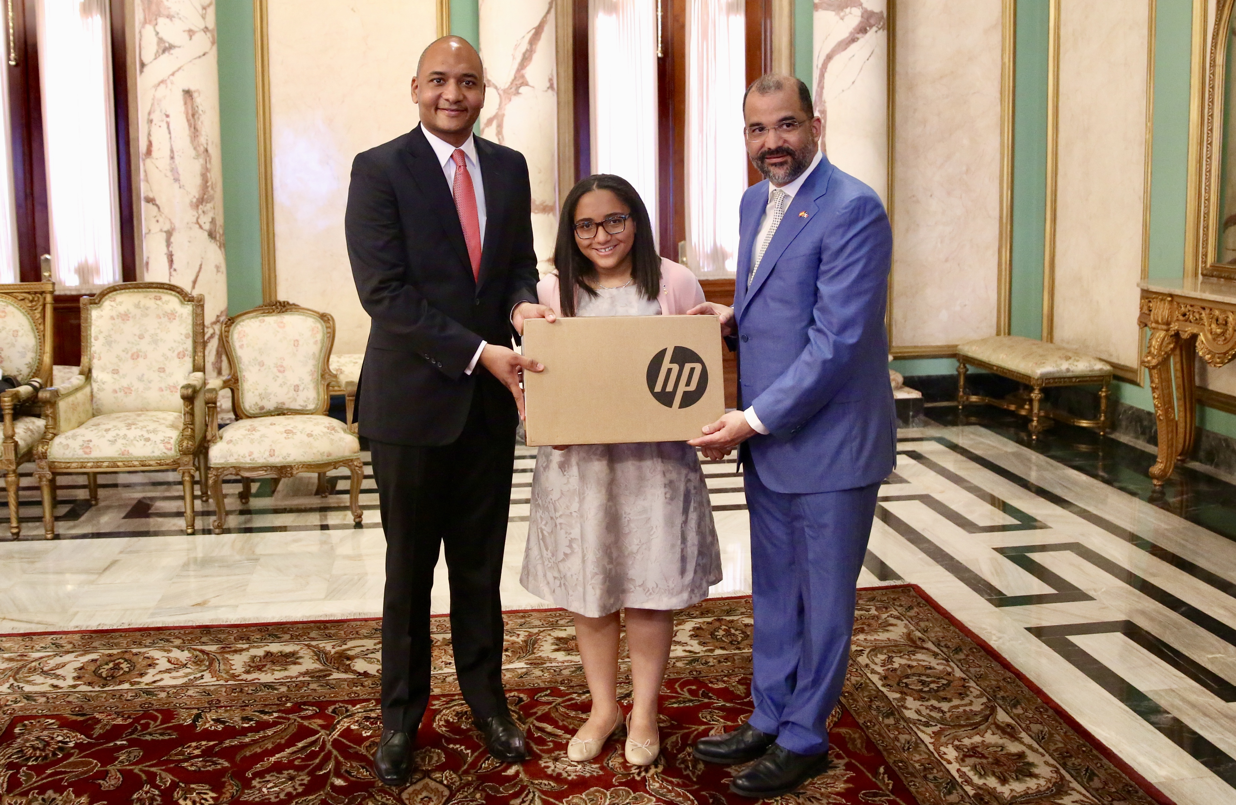 El embajador de la República Dominicana ante el Reino de España, Olivo Rodríguez Huertas, manifestó que se trata de una experiencia maravillosa, con jóvenes de origen dominicano que han sacado notas sobresalientes en las instituciones escolares españolas, de gran parte del territorio de esa nación europea. Le acompaña, el presidente del Instituto Dominicano de las Telecomunicaciones (INDOTEL), Nelson José Guillén. Foto: Romelio Montero/Presidencia República Dominicana Nota de prensa: presidencia.gob.do/noticias/con-mucha-alegria-danilo-medi...