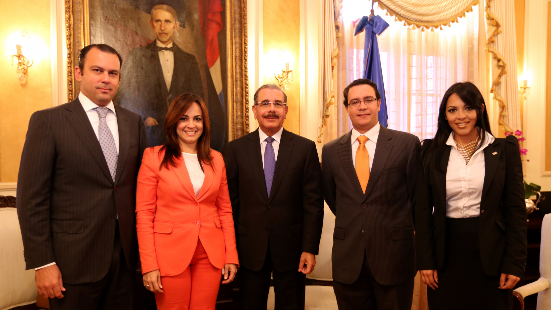 El presidente Danilo Medina recibió la visita de cortesía de miembros de la Junta Directiva de la Asociación Nacional de Jóvenes Empresarios (ANJE), encabezada por su presidenta, Laura Peña Izquierdo, así como Eugene Rault Grullón, Osvaldo Oller y Patricia Bobea,miembros de la directiva de esa institución.