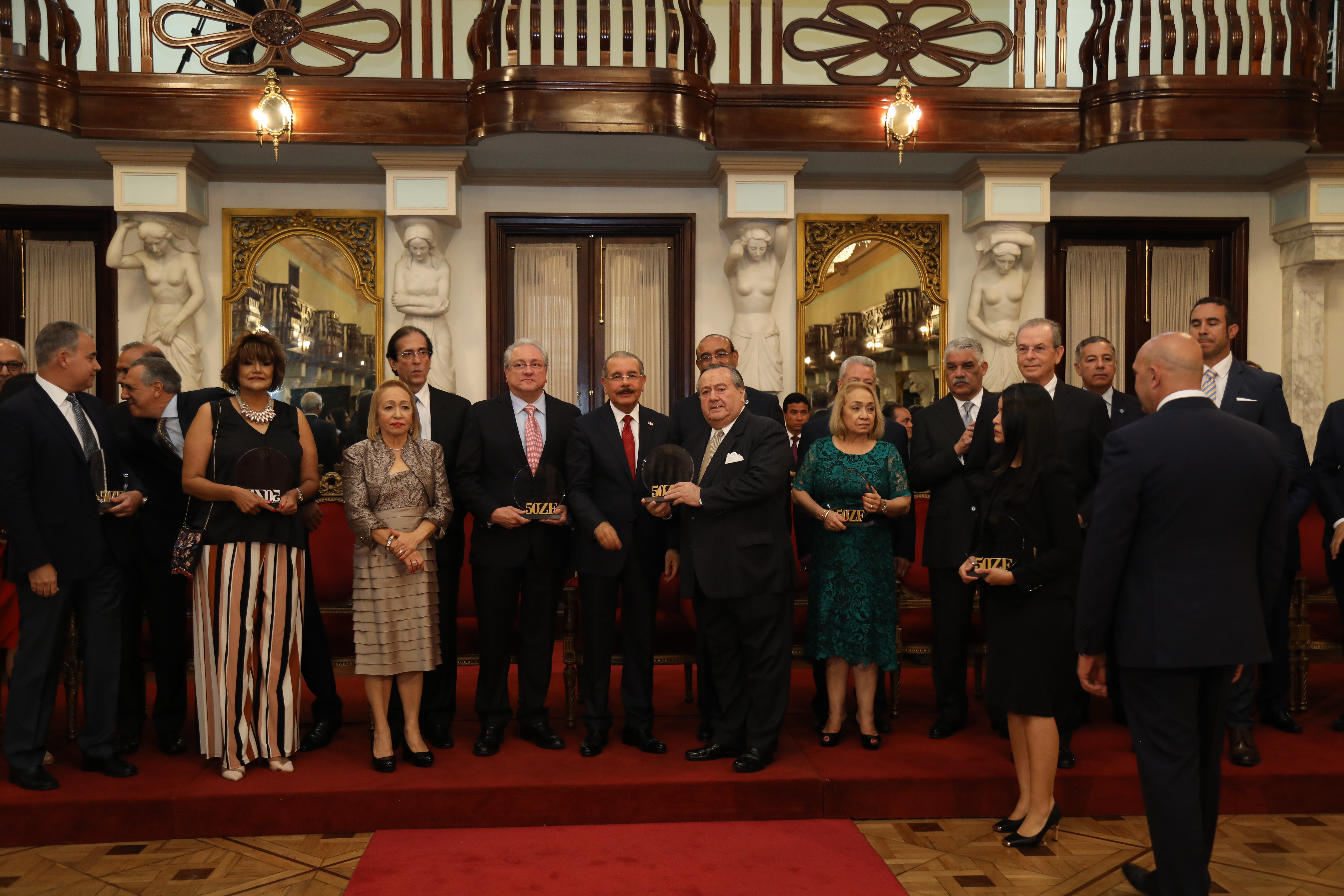 Con motivo del 50 aniversario de la implementación del régimen de zonas francas en nuestro país, el gobierno dominicano reconoció a las principales empresas, operadores de parques y propulsores del sector que generan más de 375 mil empleos. Durante un acto, celebrado en el Salón las Cariátides del Palacio Nacional, encabezado por el presiente Danilo Medina, fueron entregados 88 reconocimientos por liderazgo, innovación, desarrollo, responsabilidad social, generación de divisas, servicios logísticos, entre otras categorías. 12 de agosto de 2019.- Ver más información: Nota de prensa: presidencia.gob.do/noticias/danilo-medina-encabeza-celebr...
