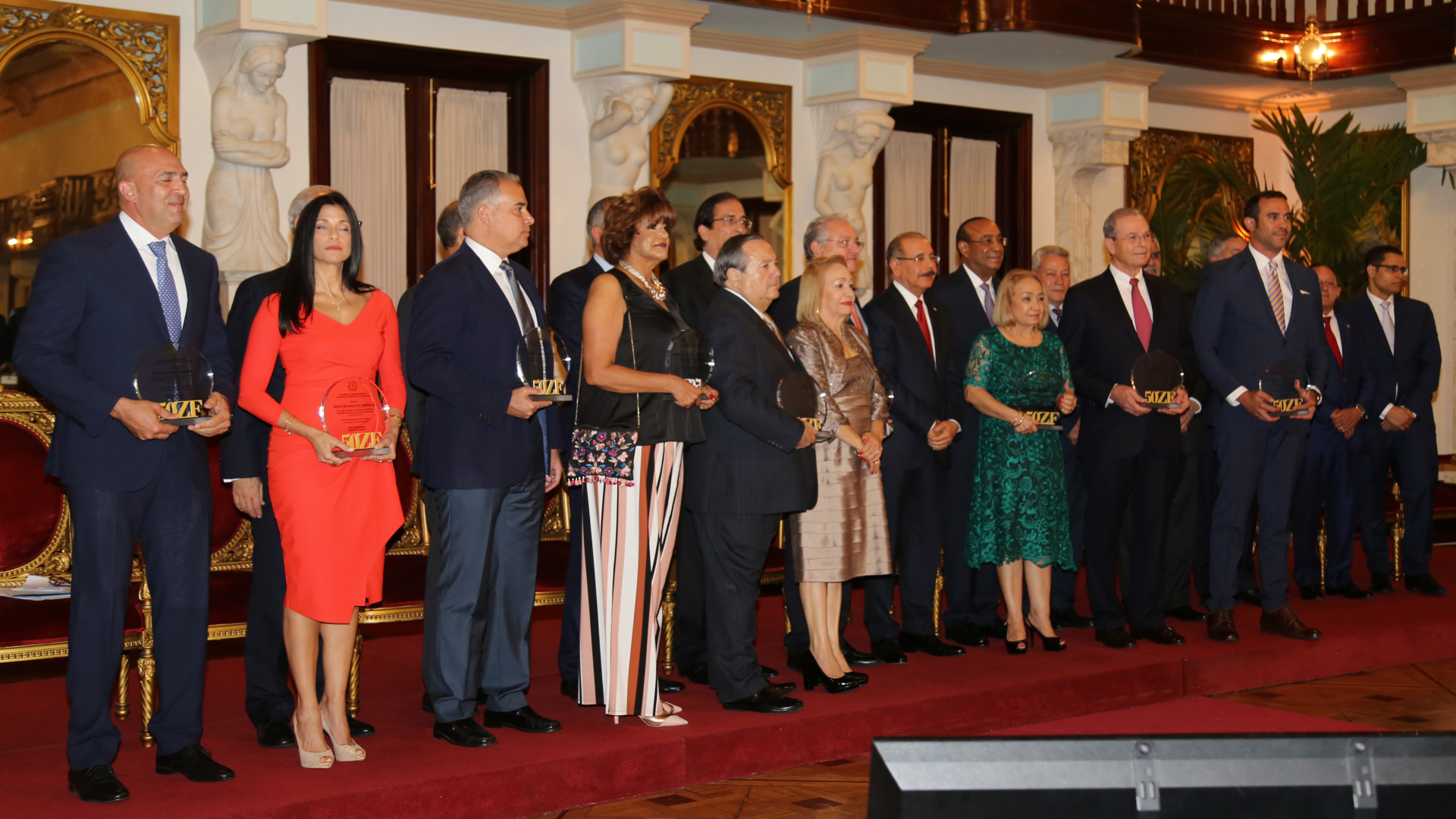 Durante un acto, celebrado en el Salón las Cariátides del Palacio Nacional, encabezado por el presiente Danilo Medina, fueron entregados 88 reconocimientos por liderazgo, innovación, desarrollo, responsabilidad social, generación de divisas, servicios logísticos, entre otras categorías.