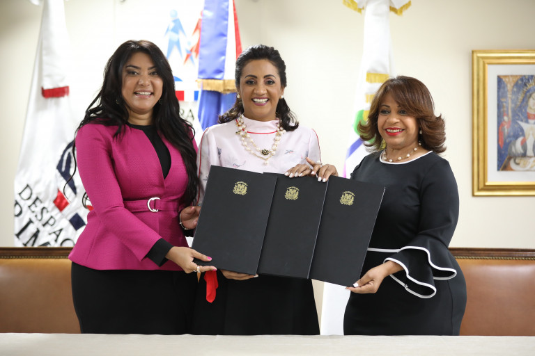 El acuerdo fue firmado por la primera dama, Cándida Montilla de Medina; la ministra de la Juventud, Robiamny Balcácer; y la presidenta de la Fundación LOATA, Luisa Milqueya Sención Filpo.