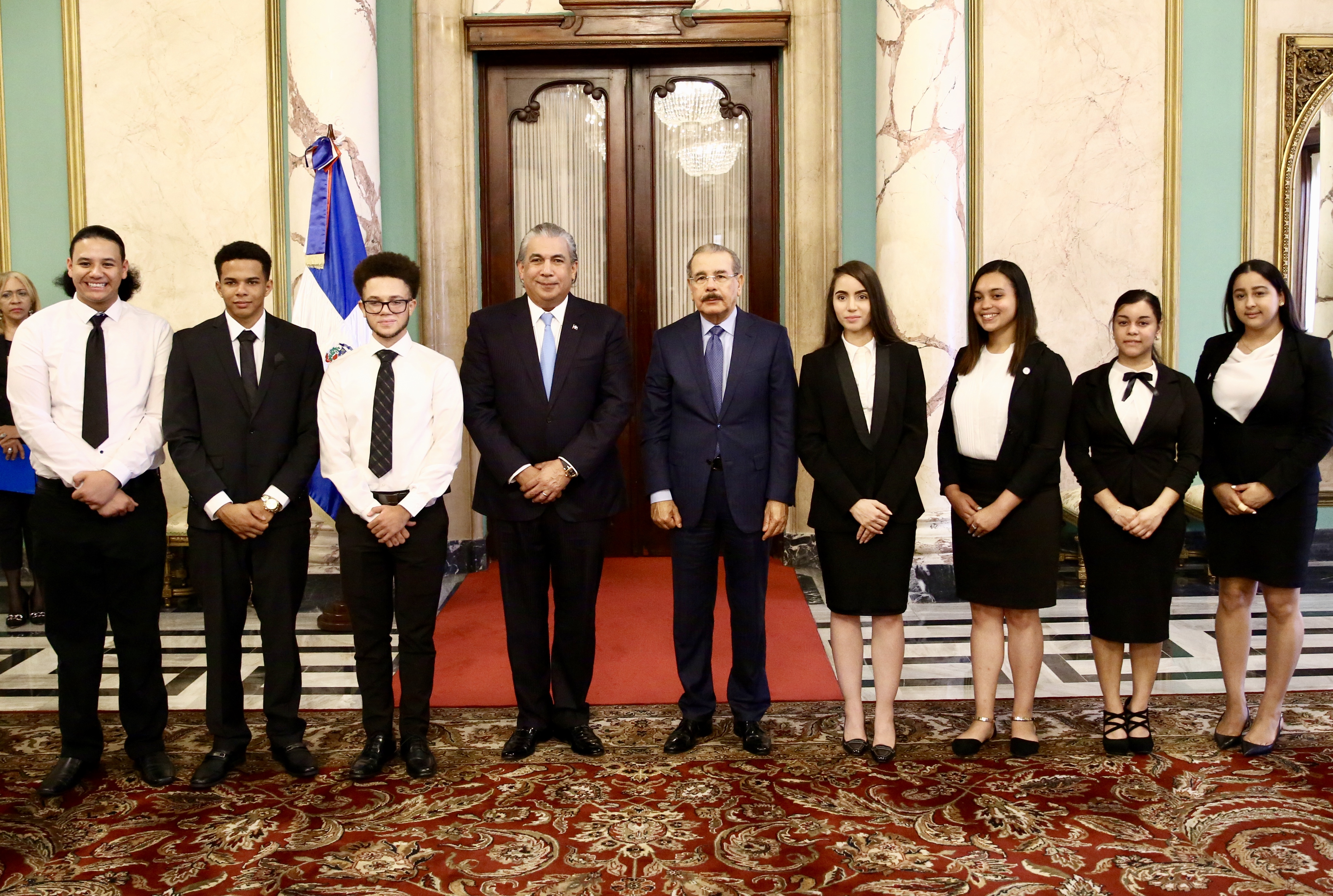 Presidente Danilo Medina ofrece cálido recibimiento en Palacio Nacional a estudiantes meritorios dominicanos radicados en Estados Unidos