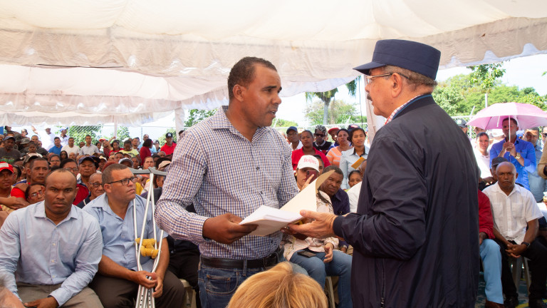 El presidente Danilo Medina se reunió con 210 productores de la Cooperativa Agropecuaria y Servicios Múltiples San Juan Bautista Misionero (COOPSAJUBAMI), para fomentar y renovar la producción de café y aguacate en Las Maguanas-Hato Nuevo, San Juan.