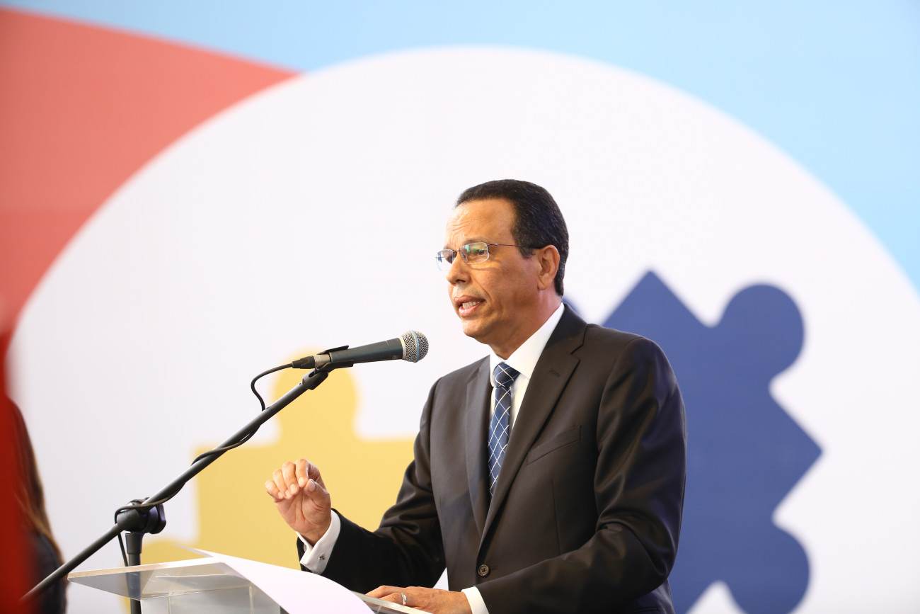 Al pronunciar el discurso central del acto, el ministro de Educación, Antonio Peña Mirabal, informó que continuará la entrega de laptpos a docentes, a través del Programa República Digital mediante el cual ya se han otorgado más de 25 mil y se estableció la meta de llegar a las 78 mil. Foto: Romelio Montero/Presidencia República Dominicana Nota de prensa: presidencia.gob.do/noticias/inicia-ano-escolar-2019-2020-...
