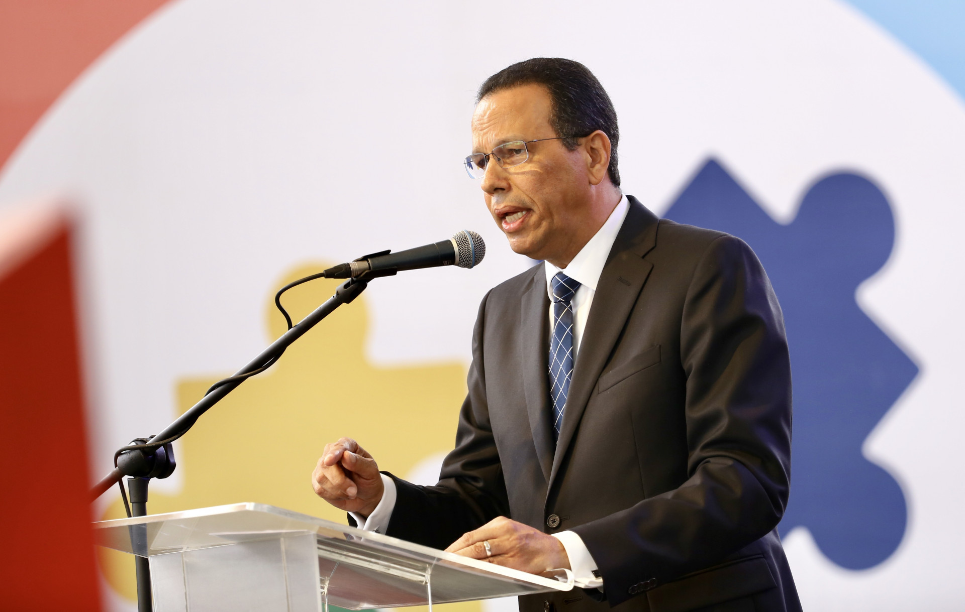 Al pronunciar el discurso central del acto, el ministro de Educación, Antonio Peña Mirabal, informó que continuará la entrega de laptpos a docentes, a través del Programa República Digital mediante el cual ya se han otorgado más de 25 mil y se estableció la meta de llegar a las 78 mil. Foto: Romelio Montero/Presidencia República Dominicana Nota de prensa: presidencia.gob.do/noticias/inicia-ano-escolar-2019-2020-...