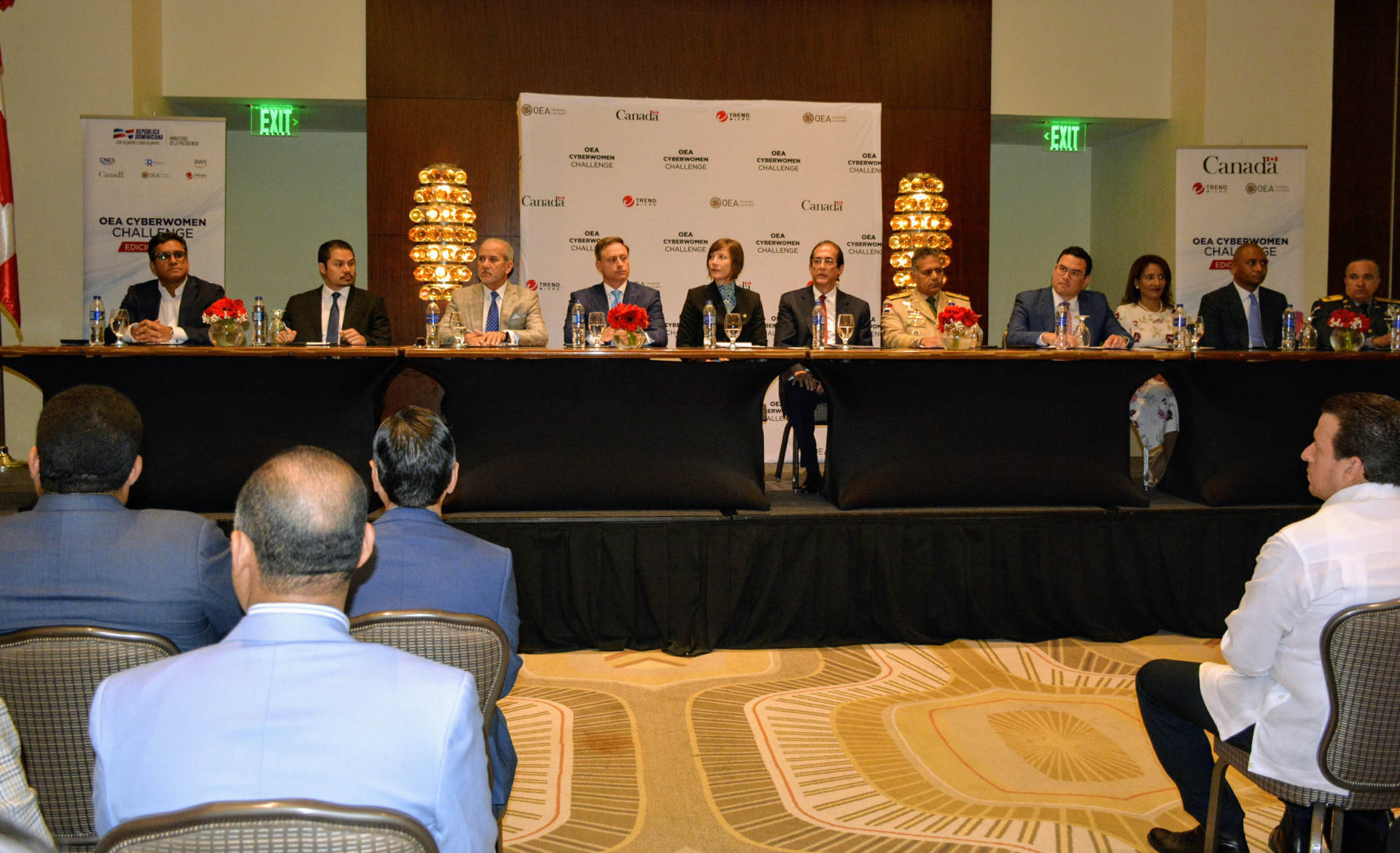 En el acto de apertura, en la mesa de honor acompañaron al ministro Montalvo la embajadora de Canadá en la República Dominicana, Shauna Hemingway; el gerente del Programa de Ciberseguridad de la OEA, Belisario Contreras, el representante de Trend Micro, Roberto Kam; el ministro de Defensa, teniente general Rubén Dario Paulino Sem; y el ministro de Interior y Policía, José Ramón Fadul. Igualmente, el procurador general de la República, Jean Alain Rodríguez; el director general de la Policía Nacional, mayor general Ney Aldrín Bautista; el director de la Dirección Nacional de Inteligencia, Sigfrido Pared Pérez; la viceministra de la Presidencia, Zoraima Cuello; el presidente del Consejo Directivo de INDOTEL, Nelson Guillén; y el director ejecutivo del Centro Nacional de Ciberseguridad, James Pichardo. Foto: Félix de la Cruz/Presidencia República Dominicana Nota de prensa: presidencia.gob.do/noticias/gustavo-montalvo-el-cyberwome...