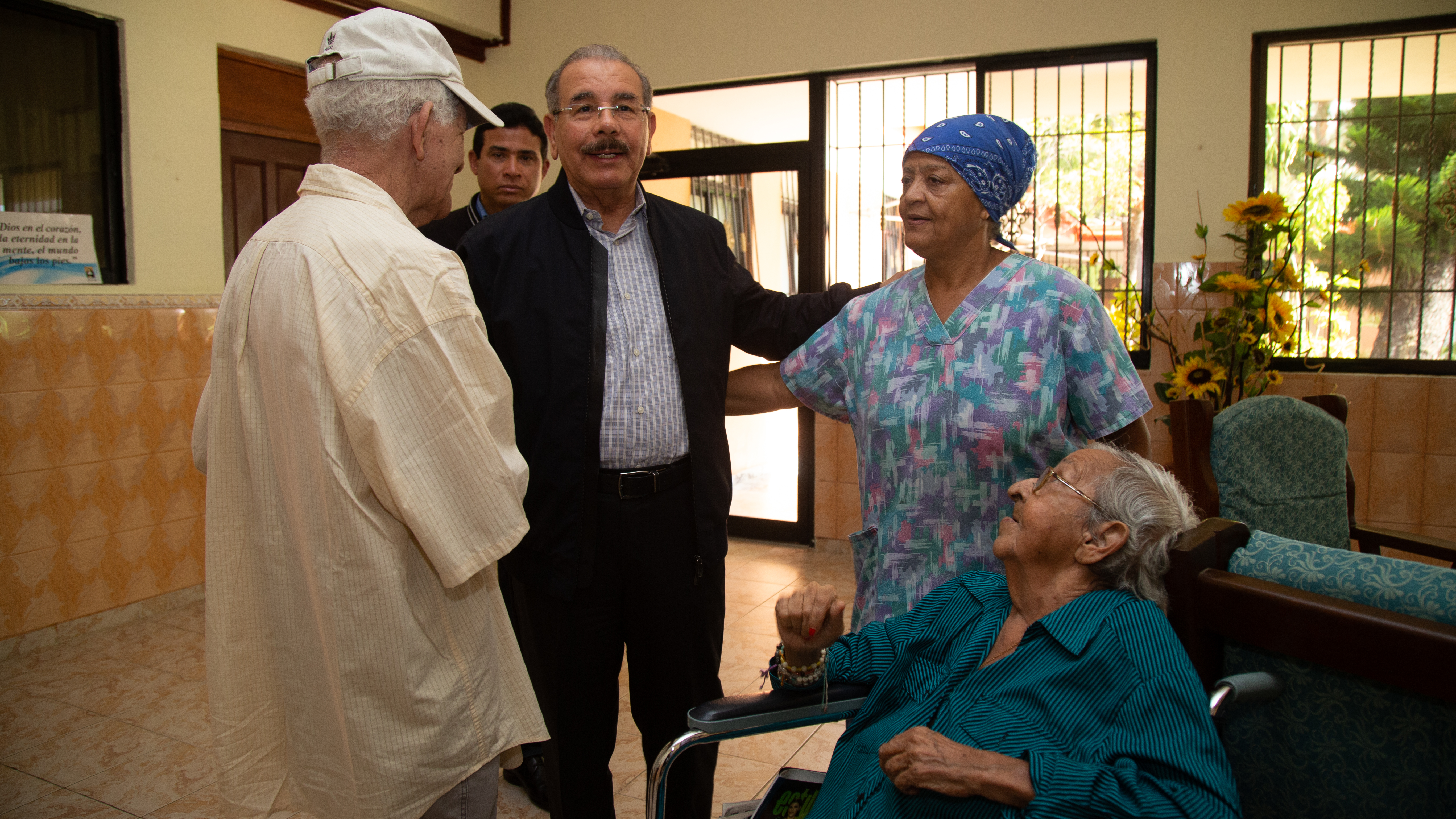 Danilo Medina lleva solidaridad del Gobierno a Hogar Ancianos San Francisco de Asís. Dispone aumento subvención y entrega autobús