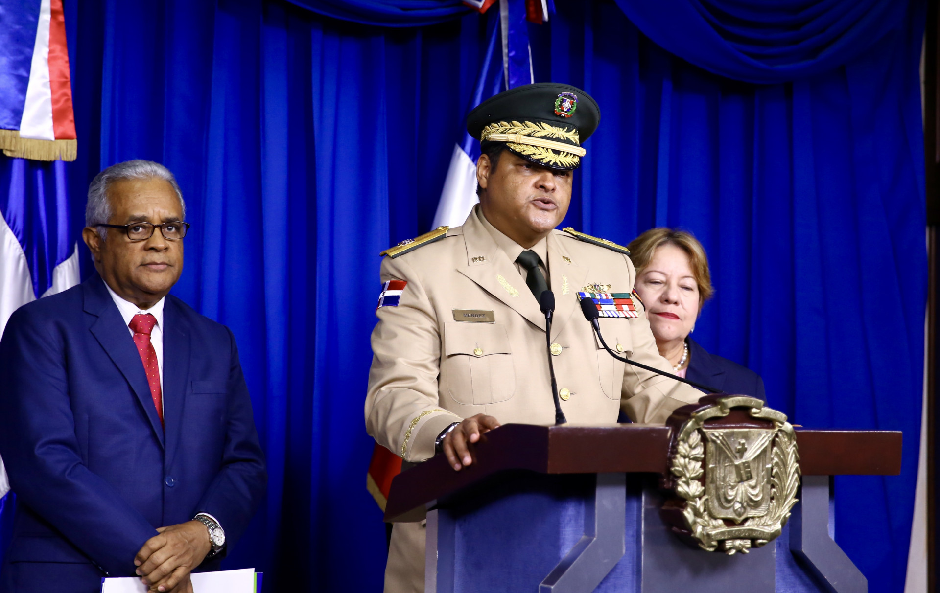 Rueda de prensa encabezada por los titulares de las instituciones que conforman el Centro de Operaciones de Emergencias (COE), Salud Pública y los altos mandos militares, realizada hoy en el Salón Orlando Martínez, del Palacio Nacional.