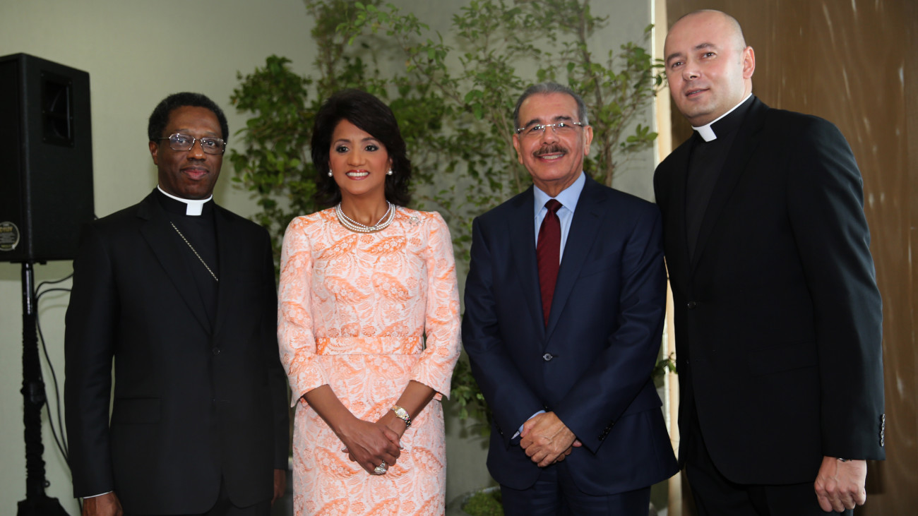 Participación del presidente Danilo Medina y su esposa, Cándida Montilla, durante la recepción ofrecida en su honor por el Cuerpo Diplomático acreditado en el país, encabezada por Monseñor Jude Thaddeus Okolo, nuncio apostólico de Su Santidad el Papa Francisco, en su calidad de decano del Cuerpo Diplomático, quien deseó los mejores parabienes a la pareja presidencial, a los funcionarios del Gobierno y a todo el pueblo dominicano.