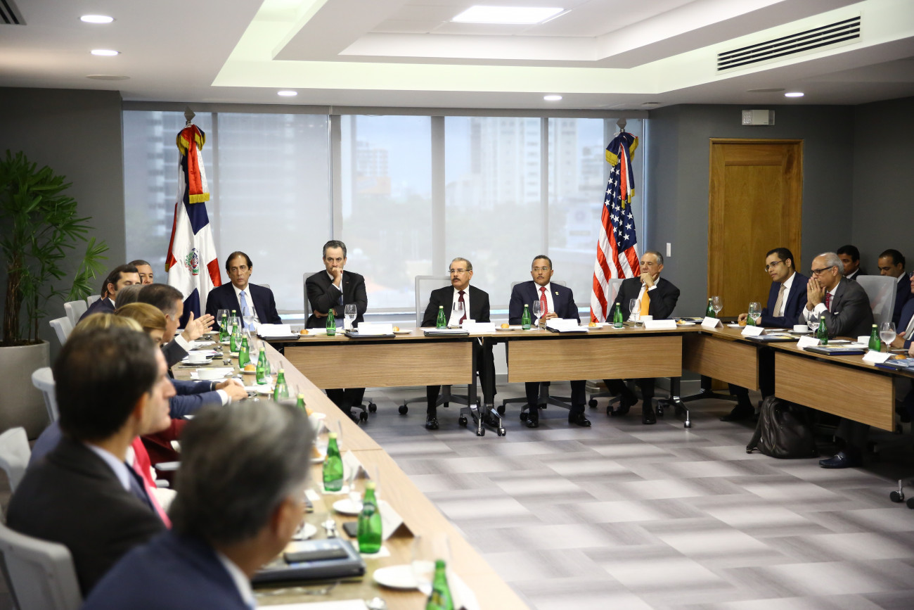Durante el encuentro, que tuvo lugar en el Salón de Conferencias de la Torre Empresarial de la AMCHAMDR, el jefe del Estado escuchó los planteamientos del presidente del Grupo Puntacana, Frank Rainieri, sobre la situación del sector turístico.