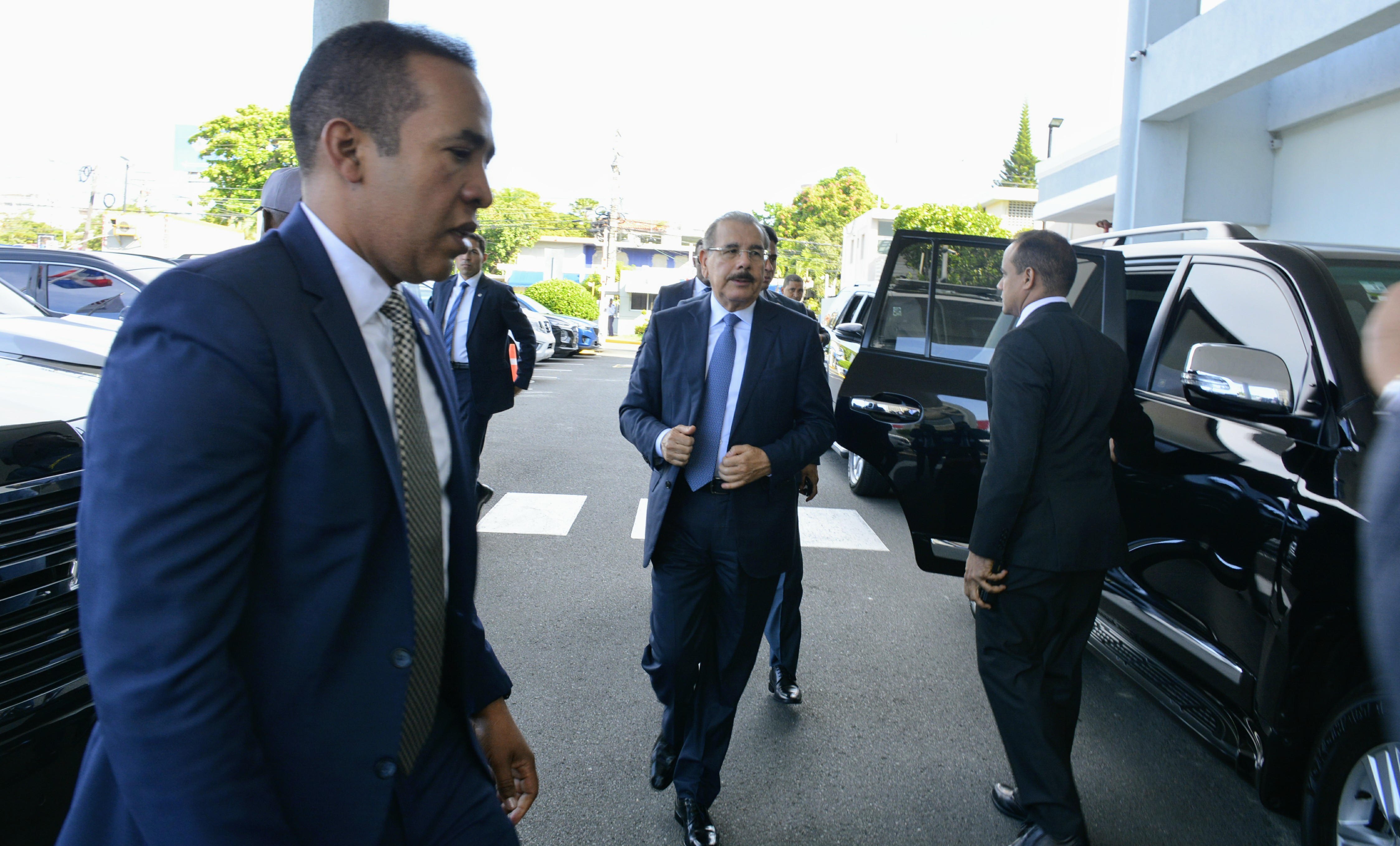 El presidente Danilo Medina a su llegada a la sede principal del Sistema Nacional de Atención a Emergencias y Seguridad 911. Foto: Presidencia República Dominicana Enlace noticia: presidencia.gob.do/noticias/presidente-danilo-medina-cono...
